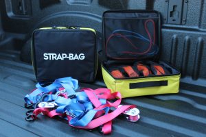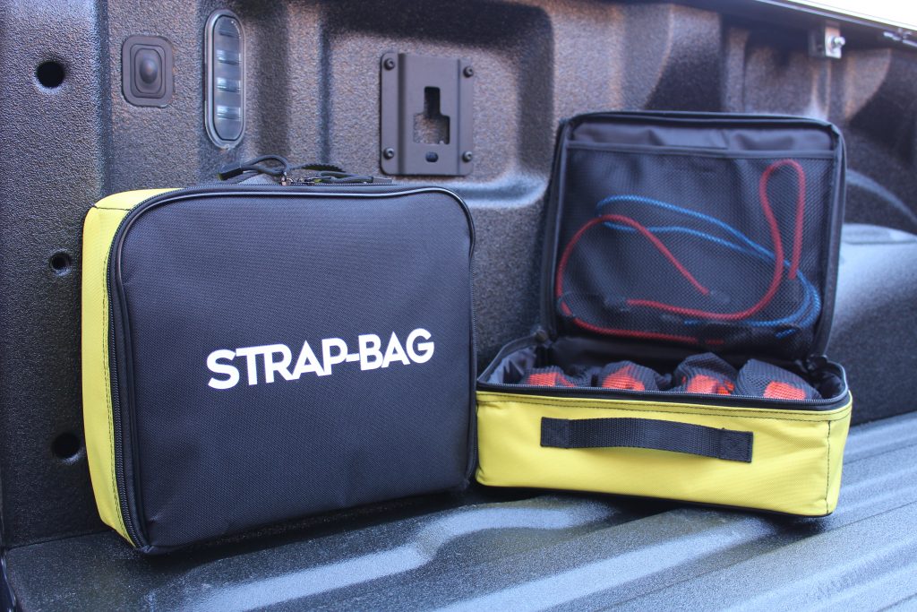 Strap-Bag organizers save time and frustration. It’s just that simple. You can clean up your act today by taking the tangled mess of bungees, tie-downs and straps out of your duffle or box and into their own mesh pouches.